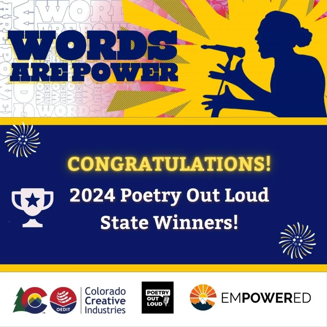 Poetry Out Loud de Colorado es una asociación de National Endowement of the Arts, Poetry Foundation, Colorado Creative Industries, e Empowered.